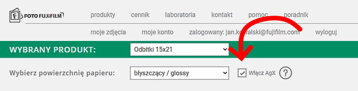 Nie wszystkie fotolaby drukują odbitki w obu wyżej wymienionych tenchnologiach - niektóre z nich posiadają wyłącznie minilaby (drukarki) do suchego procesu. Wielu dotychczasowym klientom serwisu FOTO FUJIFILM zależało na tym, aby zdjęcia były drukowane na papierach srebrowych, do których byli przyzwyczajeni przez lata. To właśnie z myślą o nich dodaliśmy opcję "włącz AgX", która daje im pewność, że otrzymają odbitki wykonane w tradycyjnej technologii.